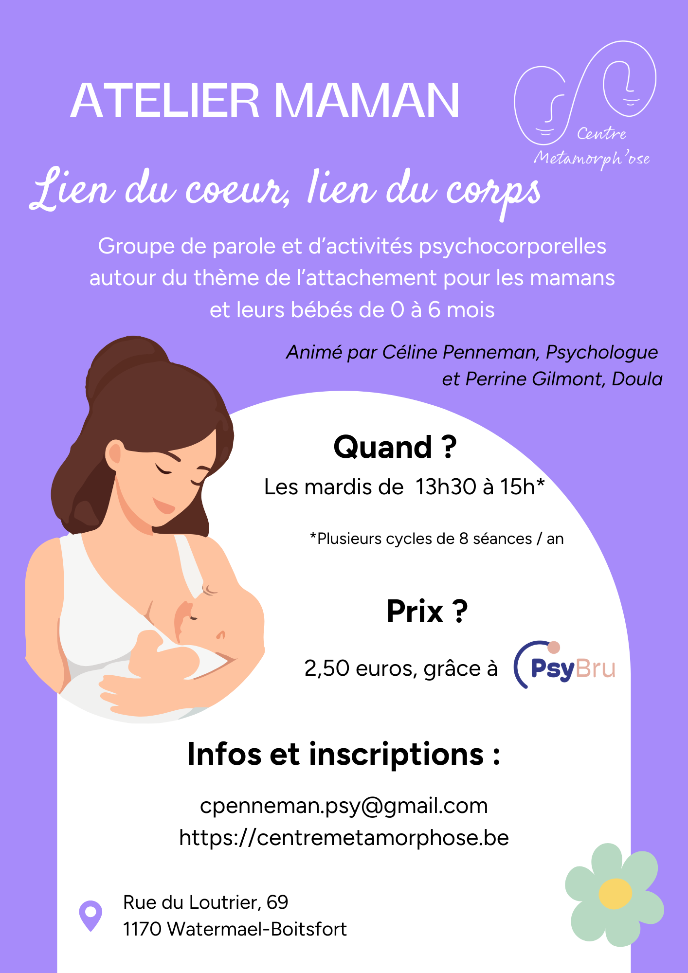 Groupe de parole et d’activités psychocorporelles autour du thème de l’attachement pour les mamans et leurs bébés de 0 à 6 mois